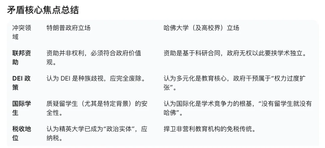 至于特朗普如何跟哈佛大学杠上了一集其矛盾的核心焦点。如下梳理一张图进行总结: