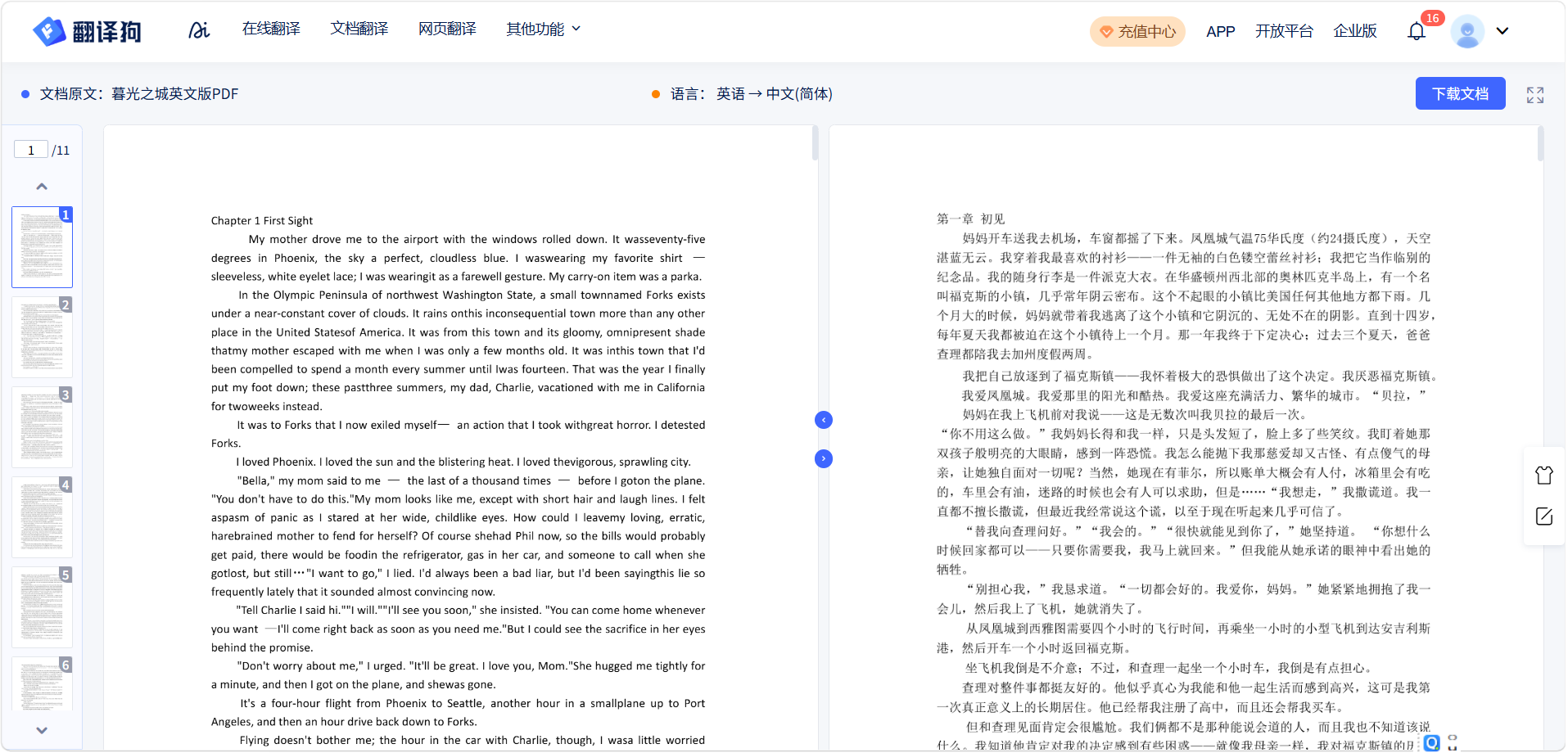 - 双语对照模式:原文译文逐段对照,方便核对术语